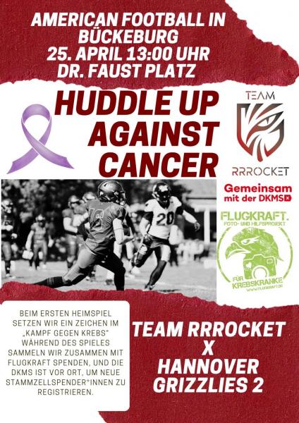 Unter dem wegweisenden Motto „Huddle up against cancer“ verbindet der Verein den sportlichen Heimspiel-Auftakt gegen die Hannover Grizzlies 2 mit einem leidenschaftlichen Kampf gegen den Krebs.