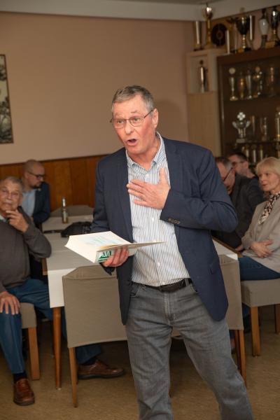 Fast 30 Jahre hat Uwe Völkening mit Martin zusammen Vorstandarbeit geleistet und zeichnete zu Beginn der Veranstaltung den Weg Martins vom Jugendspieler als Torwart über den zwölfjährigen Vorsitz der Fußballabteilung bis hin zur mittlerweile achtzehnjährigen Präsidentschaft ganz im Sinne der VfL–Philosophie. Uwe skizzierte Martin in diesen 50 Jahren im VfL als Ballfänger, Verantwortungsträger, Menschenfänger, Organisator und Motivator mit sozialem Engagement anhand vieler Beispiele - immer mit seinem „grünen Herz“ auf die Sicherung der besonderen Werte des Vereins bedacht....